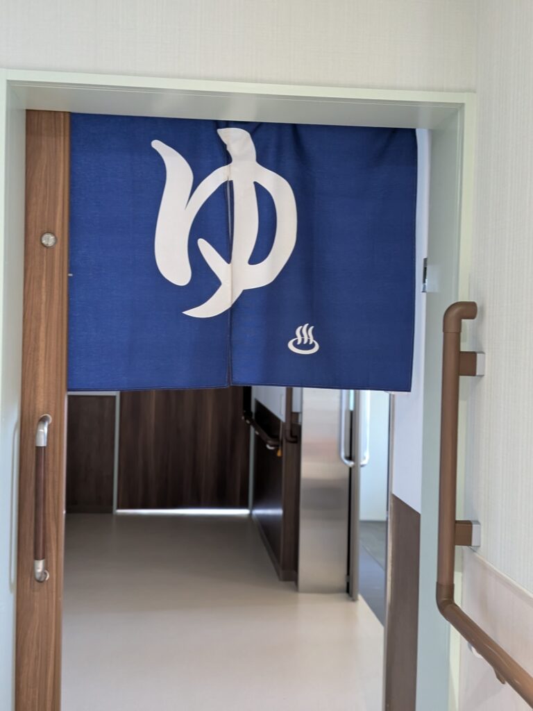 風情のある浴室の入り口。2階から5階までのすべての浴室にも天井走行型リフトが設置されている